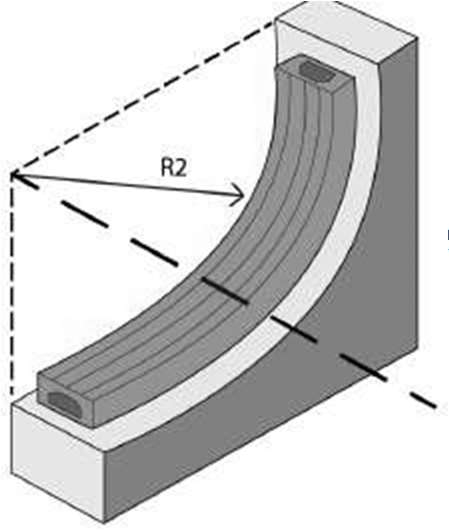 into axial expanding rectangles, “U” shapes or other similar shapes using pre-molded corners.